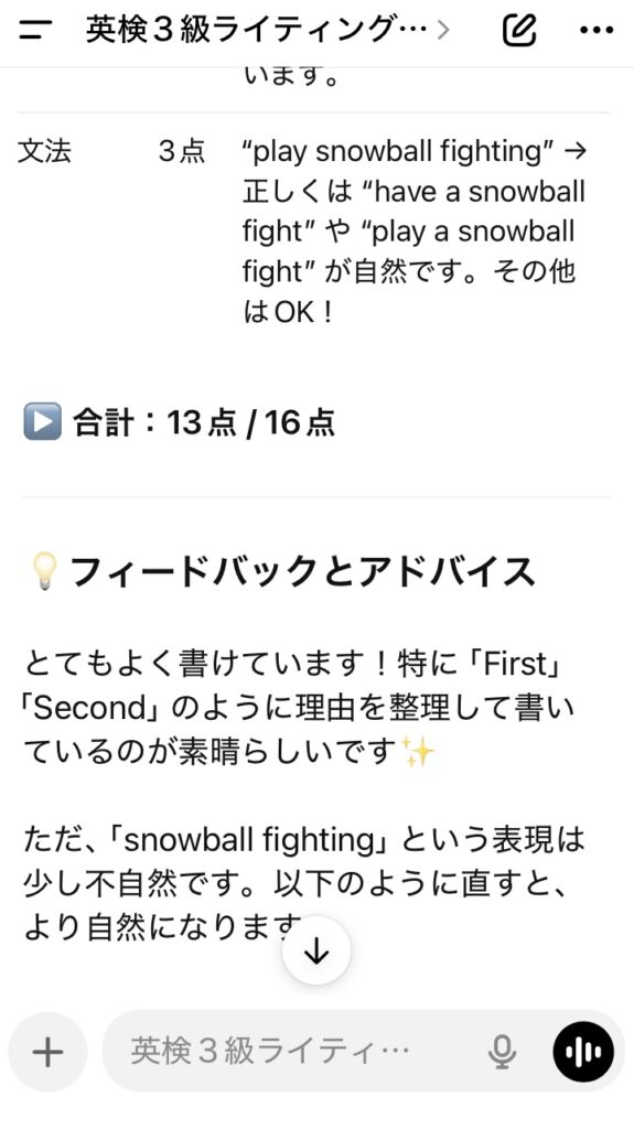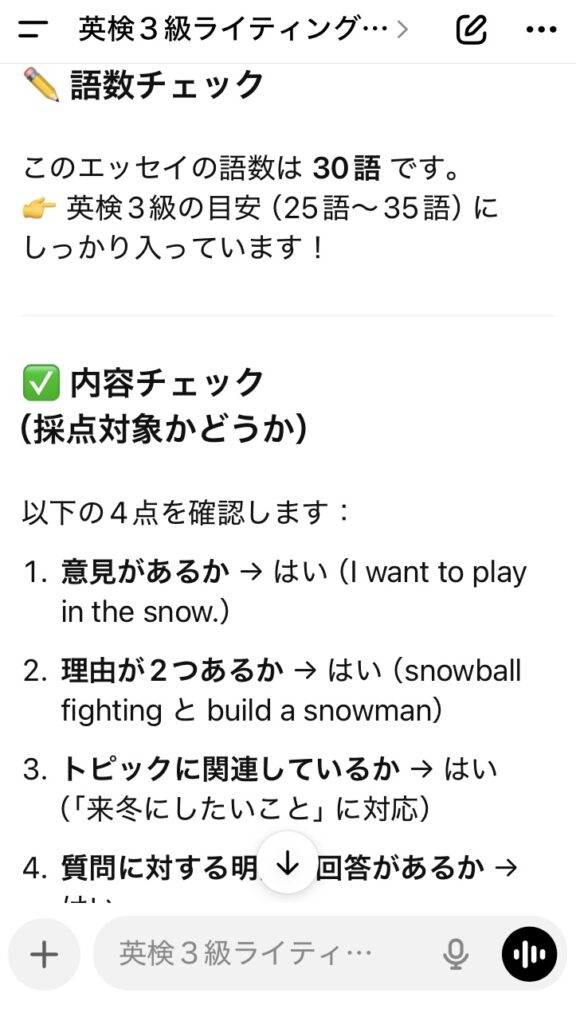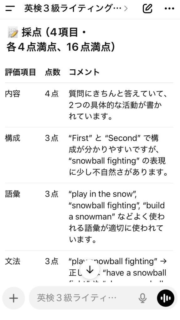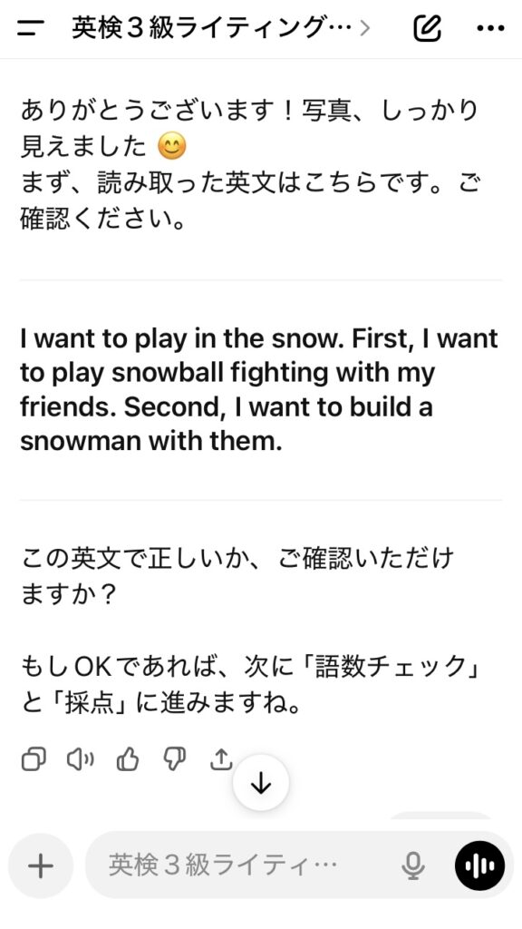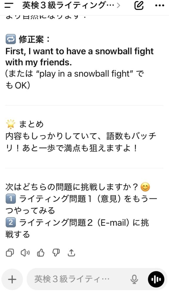 チャットGTPの英検3級ライティングコーチが一番最適な添削方法