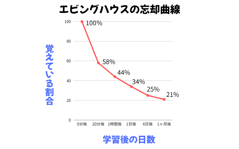 これは「エビングハウスの忘却曲線」という理論でも説明されています。